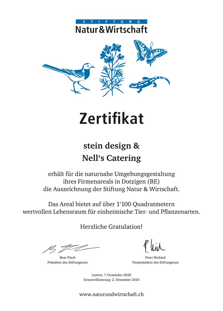 In diesem Sinne „bewirtschaften“ wir unser 1’500 m2 umfassendes Gelände als eine wertvolle und artenreiche Biosphäre.
